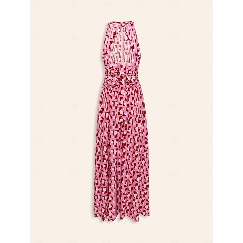 Rayon Geometric Lace Trim Maxi Dress 4