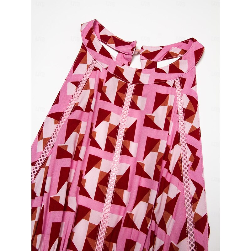 Rayon Geometric Lace Trim Maxi Dress 3