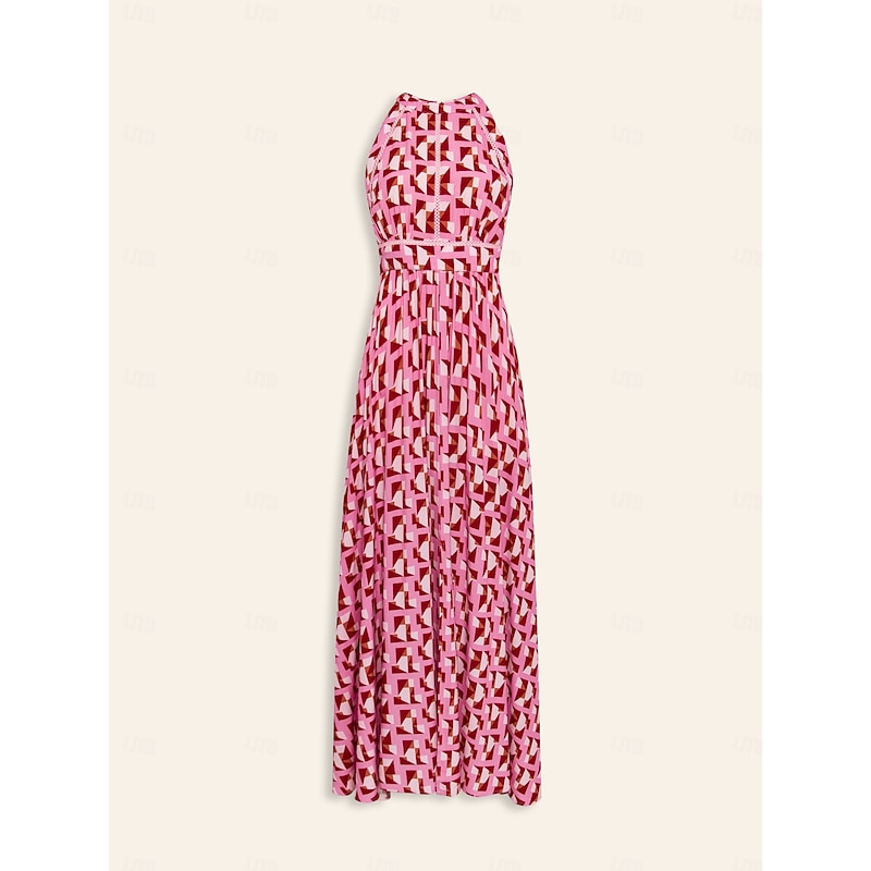 Rayon Geometric Lace Trim Maxi Dress 1