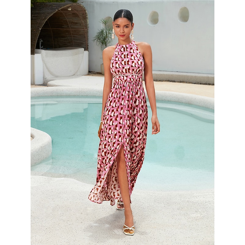 Highlights - Sleeveless design for a comfortable and chic look - Maxi dress length for a sophisticated appearance - Specifically designed for women - Elegant style that is perfect for special occasions - Delicate lace trim adds a feminine touch - Halter neck design for a flattering look and comfortable fit