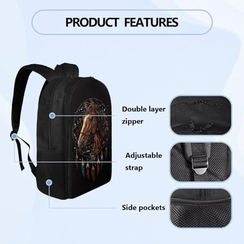 Horse Dreamcatcher Print Middle School Bag Backpack Purse for Girls Elementary Bookbag Kids Child Schoolbag Preschool Backpacks Knapsack School Supplies Rucksack Daypack with Double Zipper 3