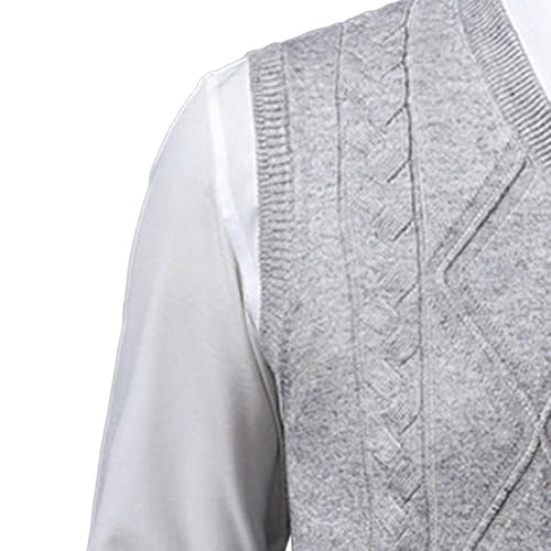 Men's Cable Knit Sweater Vest Wool Blend V-Neck Sleeveless Pullover Slim Fit Knitted Sweater Vests 4
