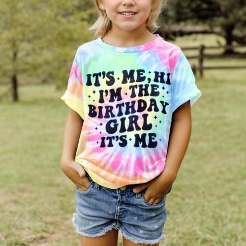 • Unique Design:Featuring the playful message "It’s Me Hi I’m the Birthday Girl," this girls tie dye shirt is perfect for spotlighting your little one on her big day, adding a touch of joy and whimsy to her birthday celebration