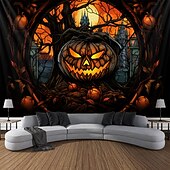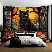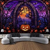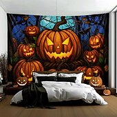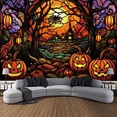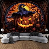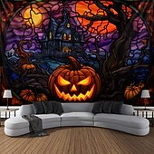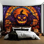 More information about Halloween Decorations Hanging Tapestry Stained Glass Pumpkin Bat Wall Art Large Tapestry Mural Decor Photograph Backdrop Blanket Curtain Home Bedroom Living Room