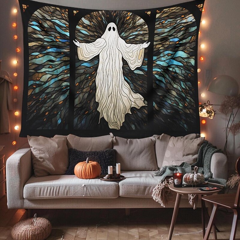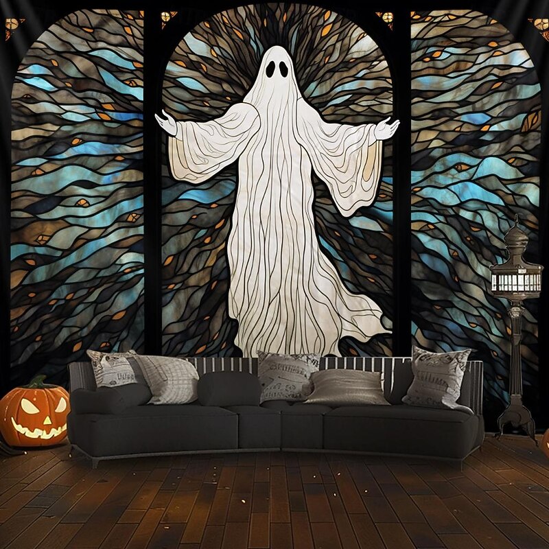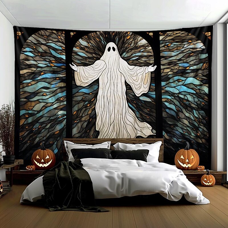 Halloween Decorations Hanging Tapestry Stained Glass Pumpkin Bat Wall Art Large Tapestry Mural Decor Photograph Backdrop Blanket Curtain Home Bedroom Living Room 19