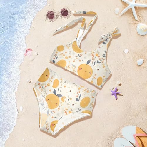 KLL Floral Pattern Orange Fruits Girl Two Pieces Bikini Set hasty-Dry Swimsuit Swimwear Cute Shoulder Strap