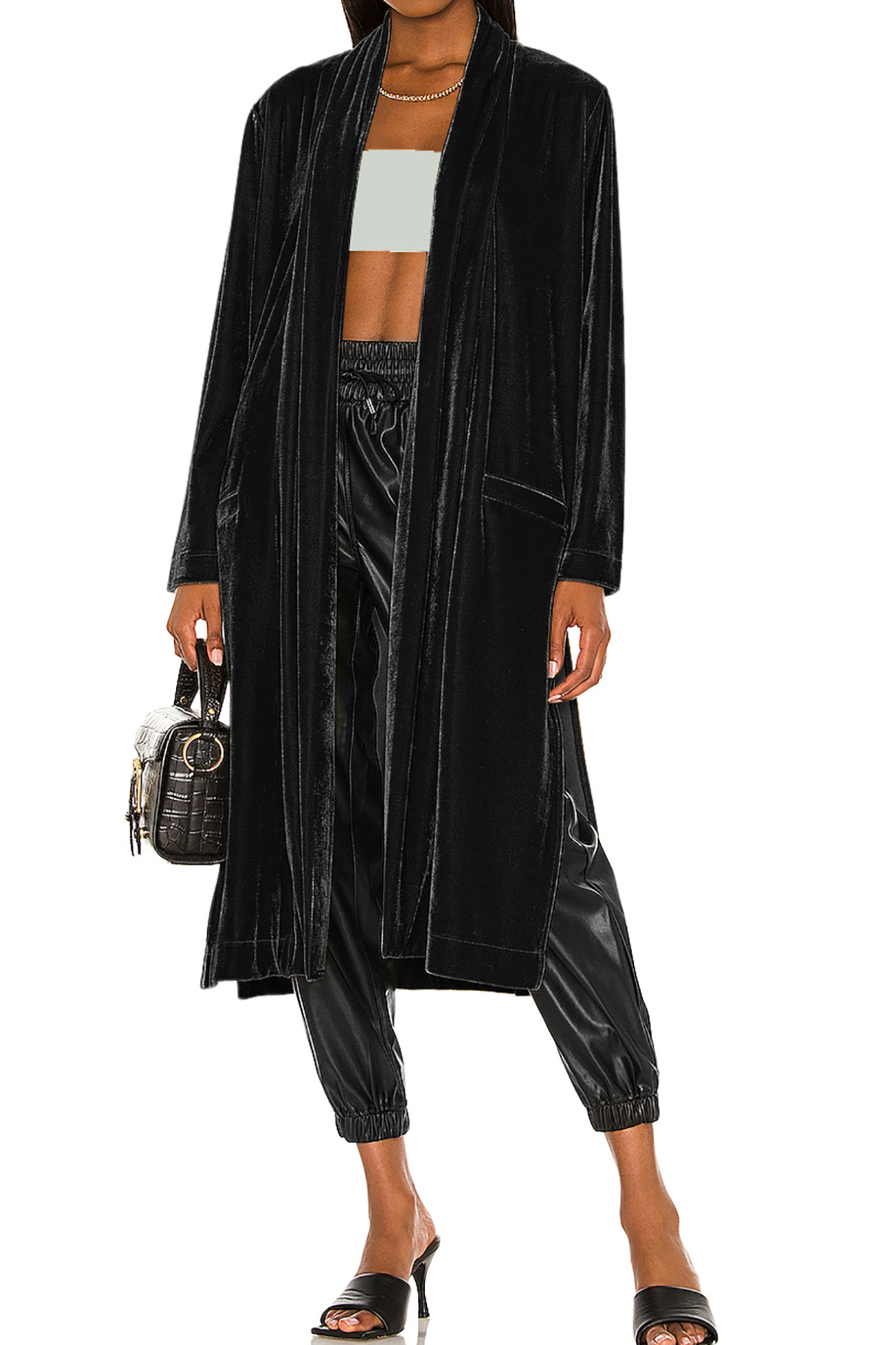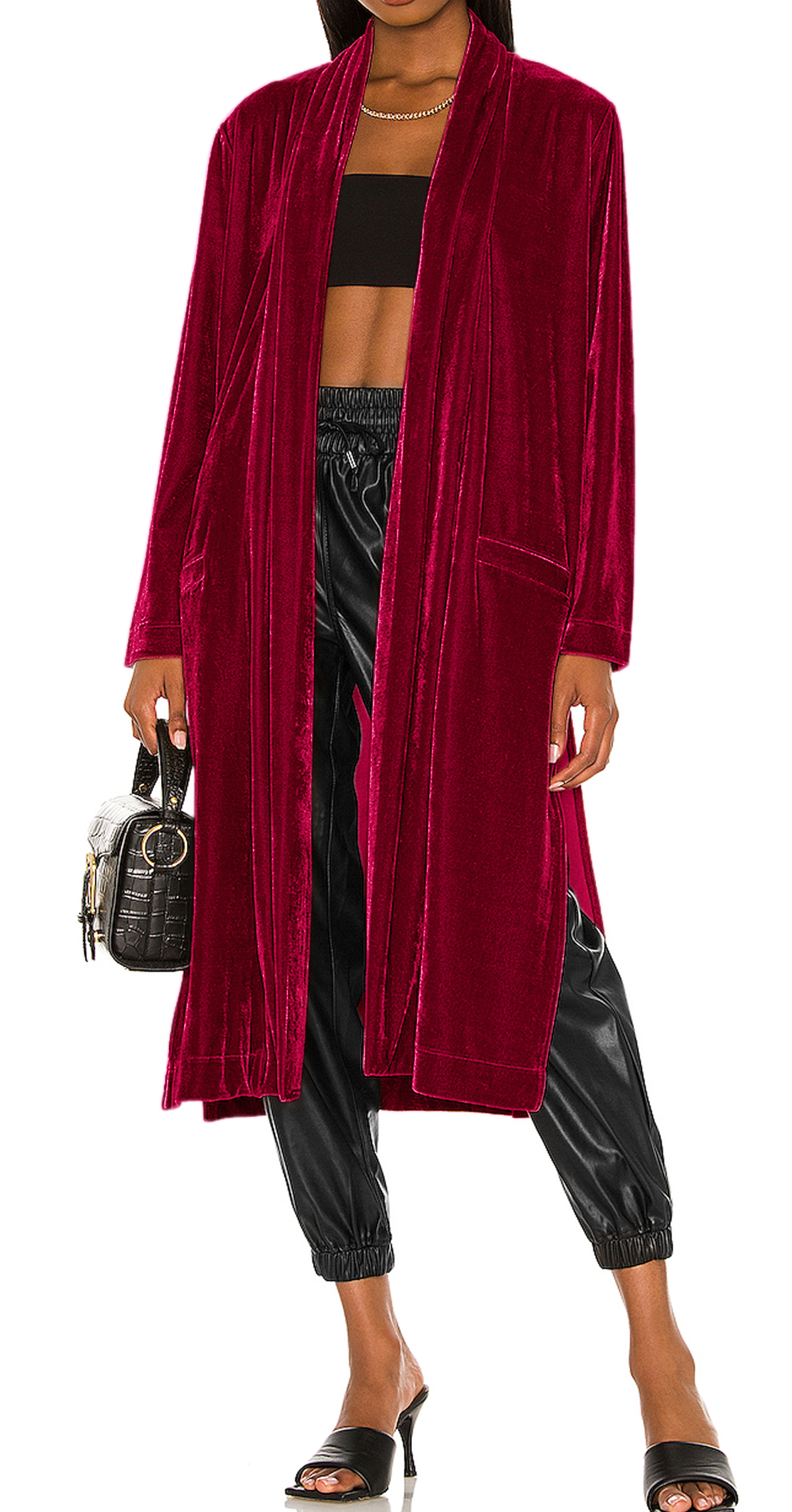 R.Vivimos Women's Long Cardigans Fall Velvet Long Sleeve Open Front Side Slit Loose Casual Jackets Duster Coat with Pockets 1