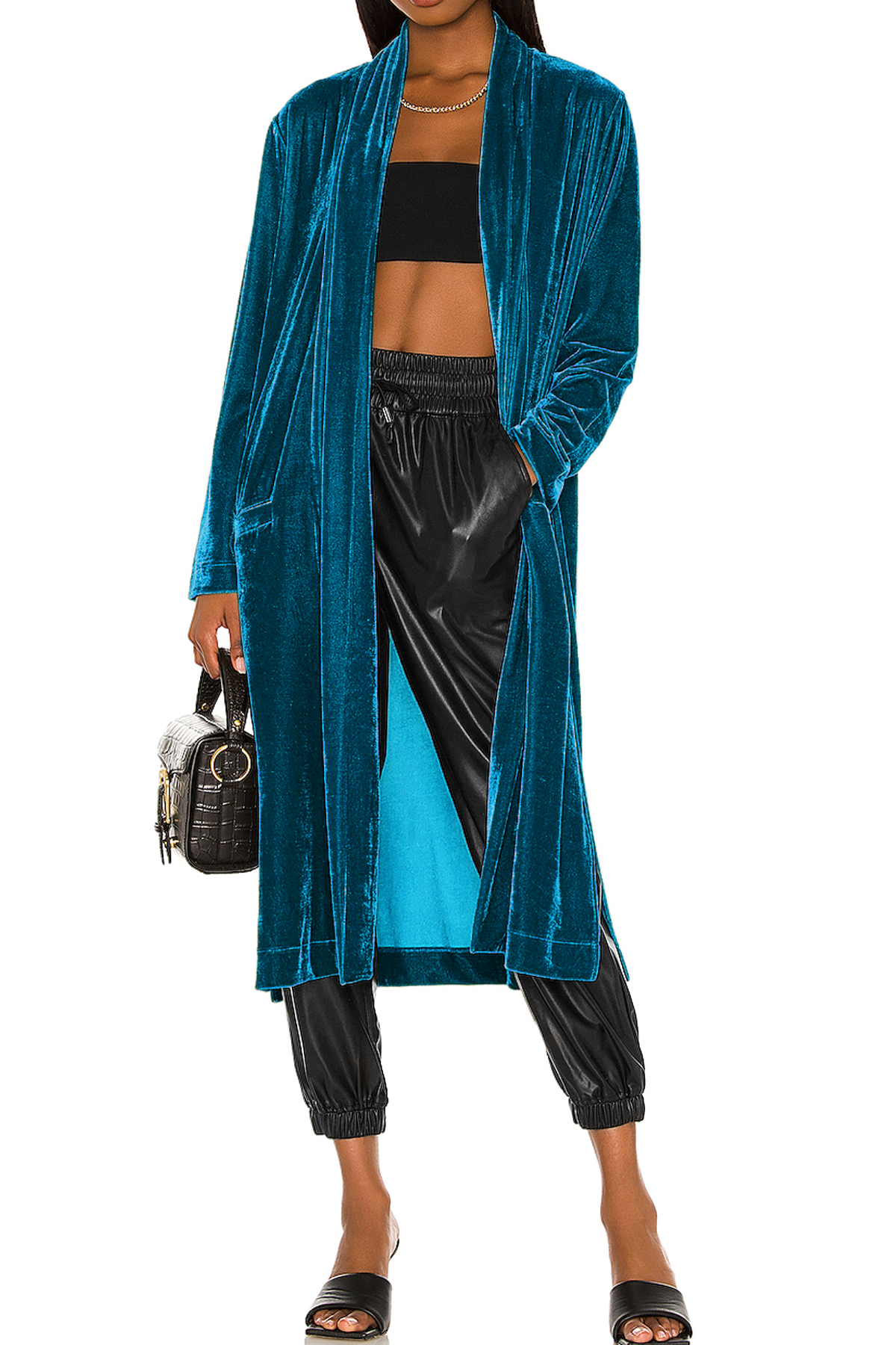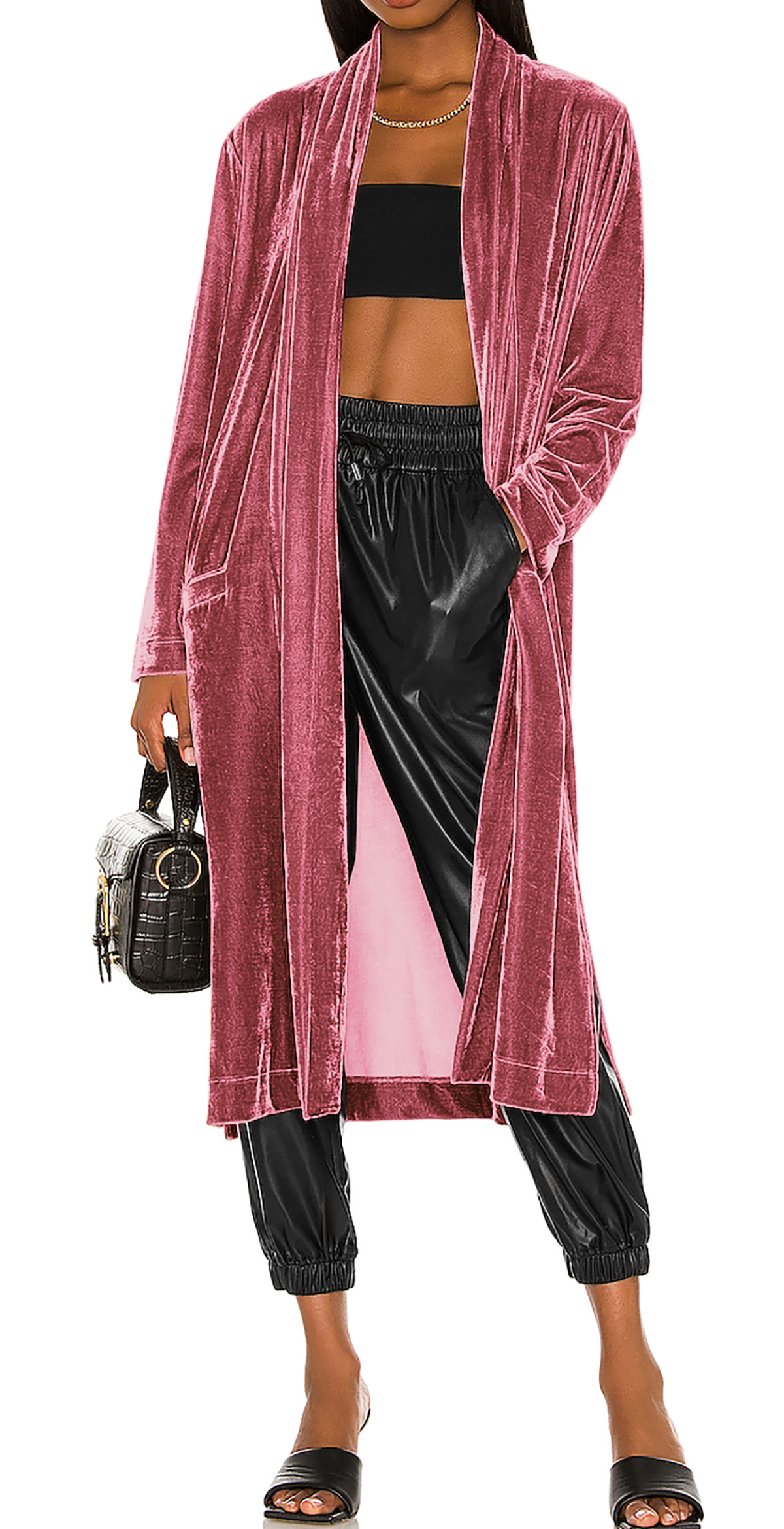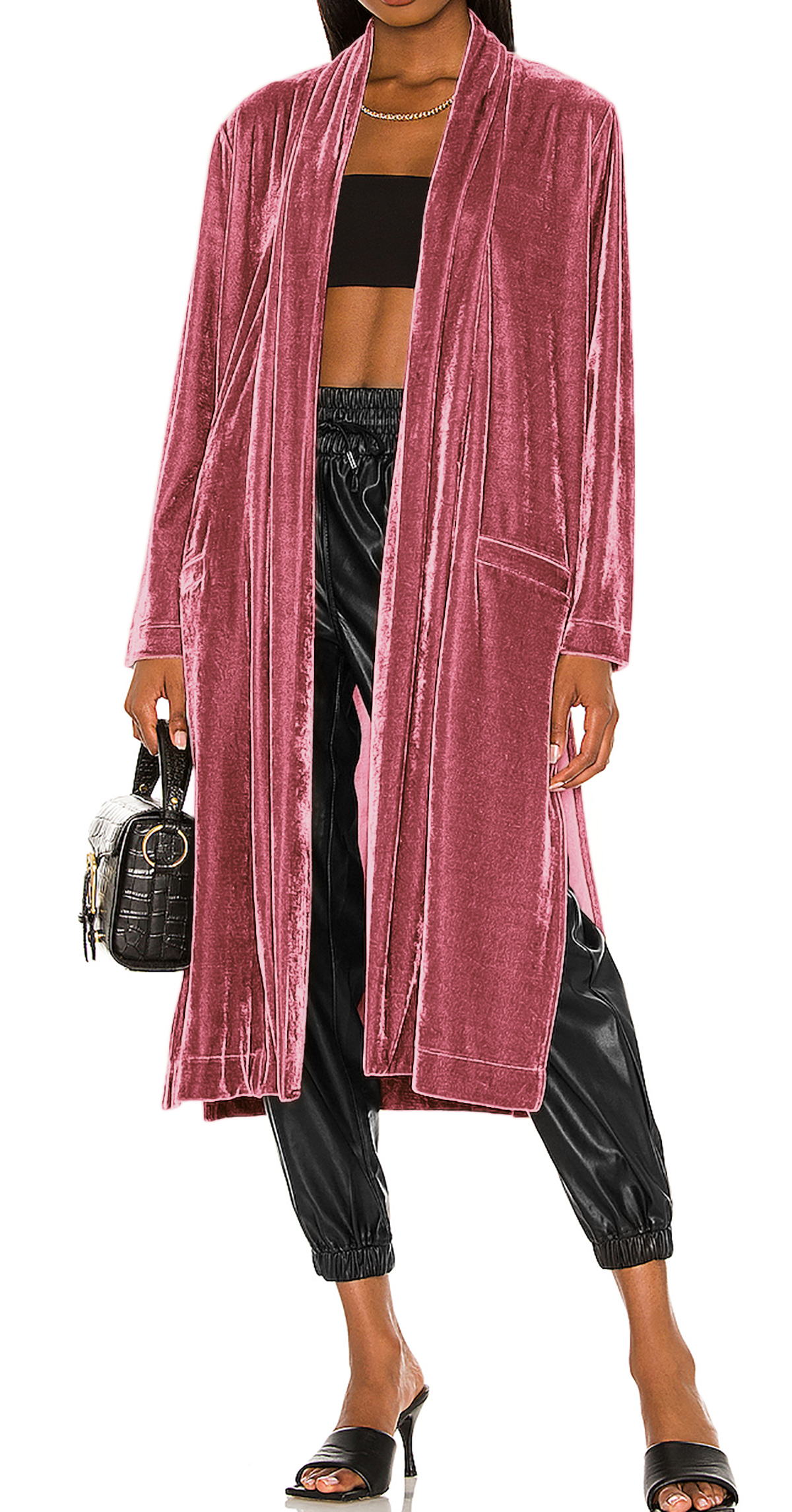 R.Vivimos Women's Long Cardigans Fall Velvet Long Sleeve Open Front Side Slit Loose Casual Jackets Duster Coat with Pockets 5