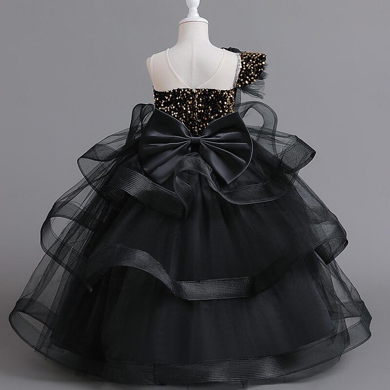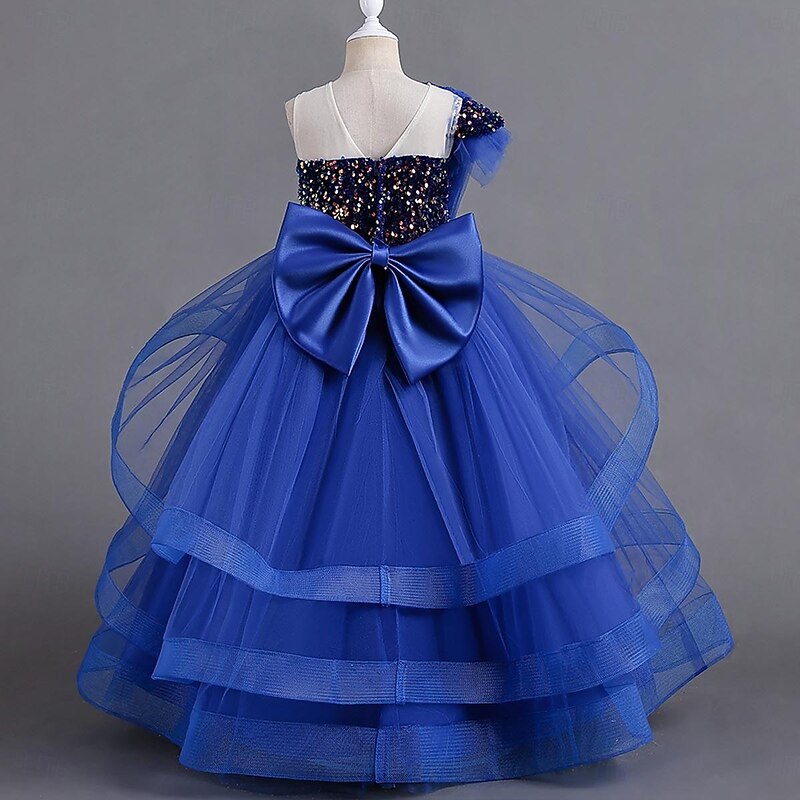 More information about Kids Girls' Party Dress Solid Color Sleeveless Special Occasion Sequins Tie Knot Sweet Polyester Maxi Party Dress Summer Spring Fall 4-12 Years Black Red Blue