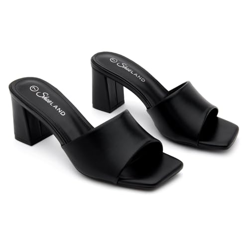 HOT ! Shoe Land 3 Inch Block Heels for Women – Square Open Toe Slip-On Heeled Mules | Chunky Heel Dressy & Casual Sandals for Party, Wedding, Office | 2025 Trendy
