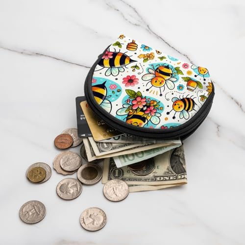 Portable Coin Purse Delightful-Bee-Honey Mini Zippered Money Pouch Card Holder 5