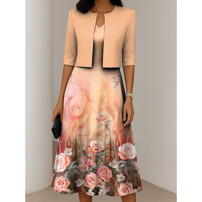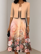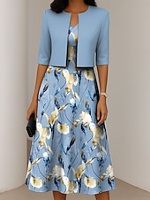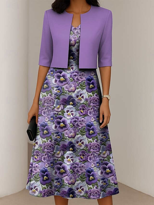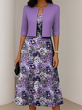 More information about Women's Dress Set A Line Dress Elegant Casual Floral Graphic Print Midi Dress Half Sleeve Crew Neck Formal Vacation Blue Purple Dark Blue Summer Spring Regular Fit