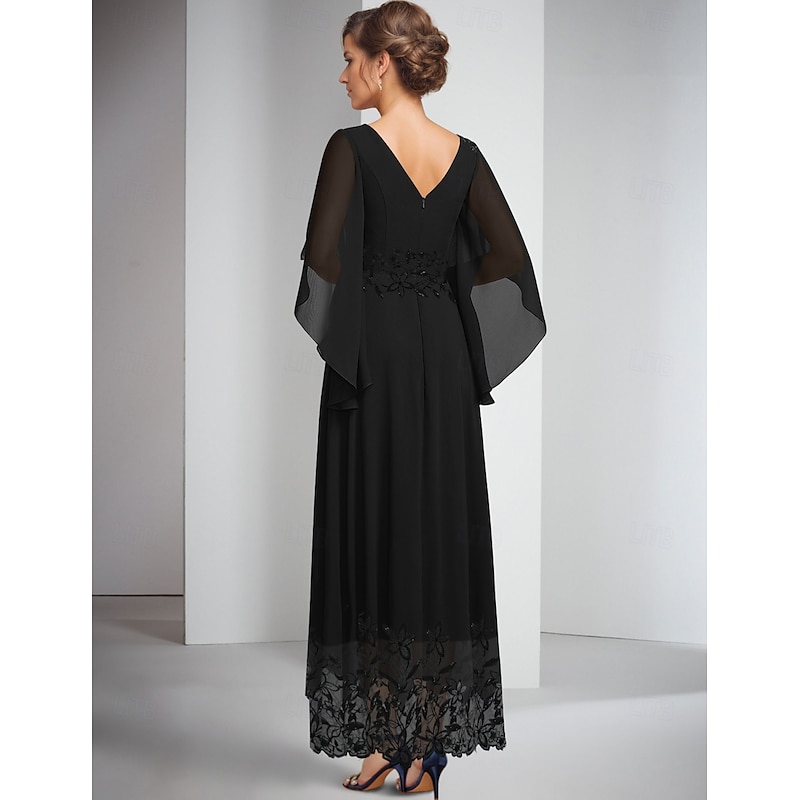More information about A-Line Dress Mother of the Bride Dress Elegant Sparkle & Shine Jewel Neck Ankle Length Chiffon Long Sleeve with Lace Embroidery Solid Color