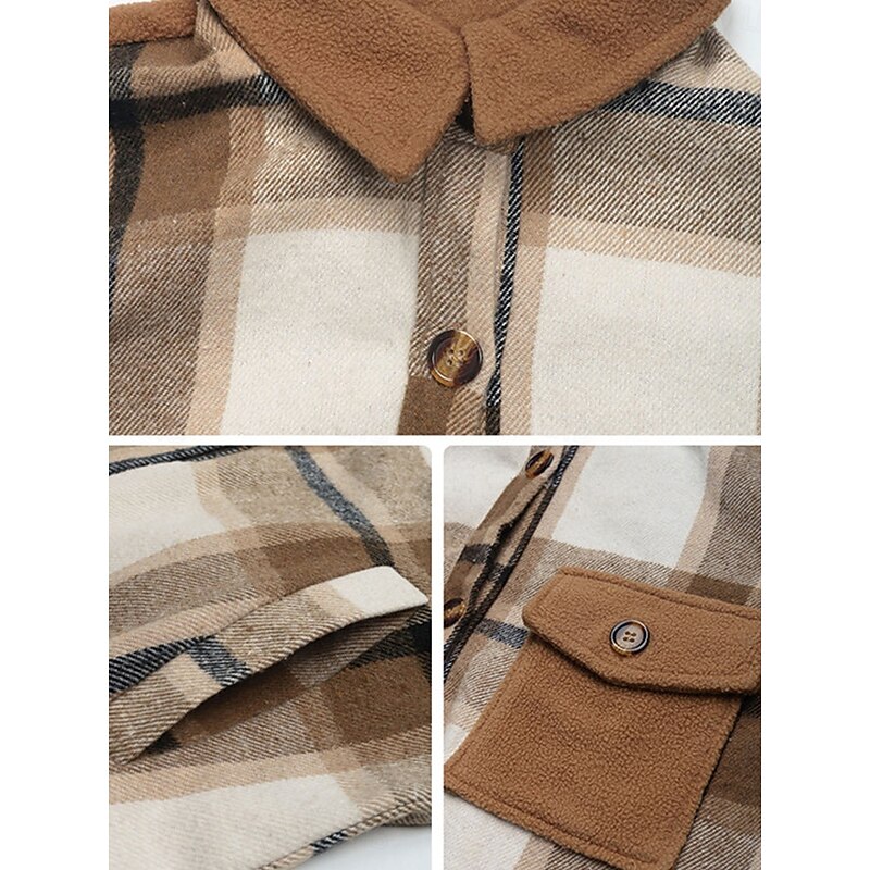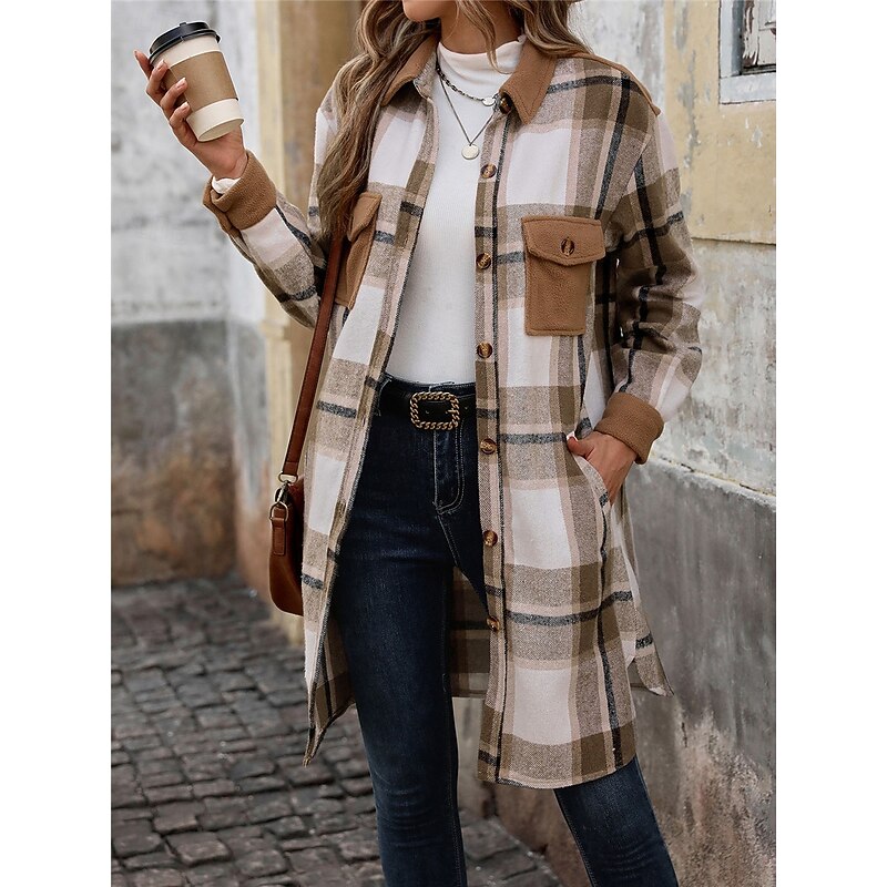 Highlights [Fabric and Fit] : Crafted from a high-quality polyester fabric, this women's winter jacket boasts micro-elasticity for comfort and a thermal warm design perfect for chilly days. Its regular fit ensures a comfortable layering option, accommodating various outfits seamlessly. [Design Highlights] : Featuring a stylish plaid and stripes pattern, the coat comes with a single-breasted placket and a practical shirt-style collar. The long sleeves and medium-length silhouette offer a sophisticated touch, while pockets add both style and functionality. [Occasions] : Versatile for daily wear, street outings, and outdoor adventures, this jacket is an excellent choice for the fall and winter seasons. It effortlessly blends stylish and casual elements, making it suitable for a variety of relaxed settings. [Size Range] : Available in sizes S, M, L, and XL, this coat caters to different body types, providing options that ensure a flattering fit for everyone.