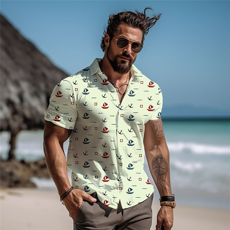 Men's Sailboat Shirt Summer Hawaiian Shirt Aloha Shirt Short Sleeve Shirt Vacation Fashion Hawaiian Outdoor Vacation Hawaiian White Blue Green S M L 6