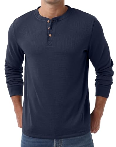 • Men's Soft & Stretchy Waffle Henley Shirt:This lightweight long sleeve pullover is ultra comfy for all day wear and keeps you warm in cool weather.