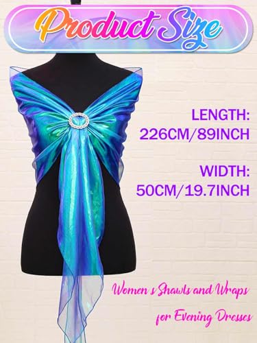EASEDAILY Women Shawls and Wraps for Evening Dresses Purple Green Sparkly Bridal Sheer Scarf with Rhinestones Buckle 5