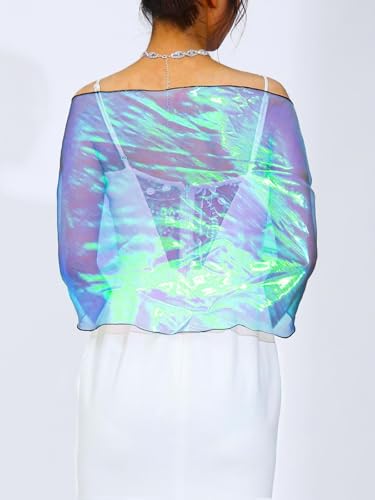 More information about EASEDAILY Women Shawls and Wraps for Evening Dresses Purple Green Sparkly Bridal Sheer Scarf with Rhinestones Buckle