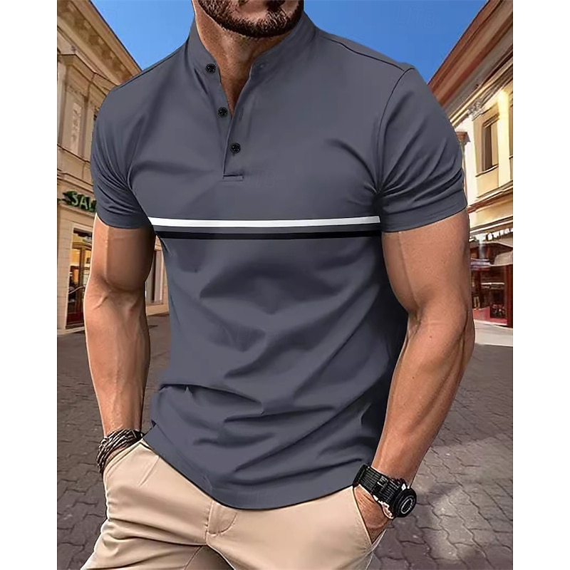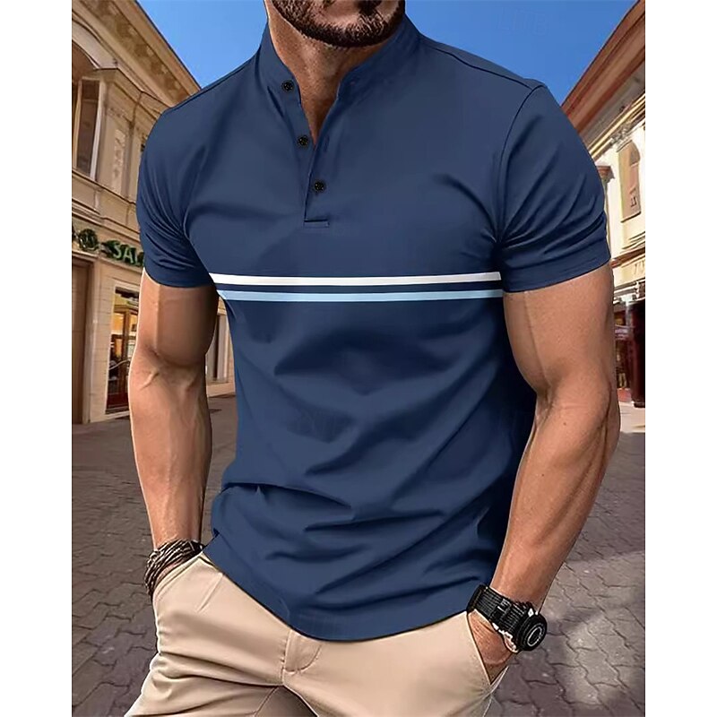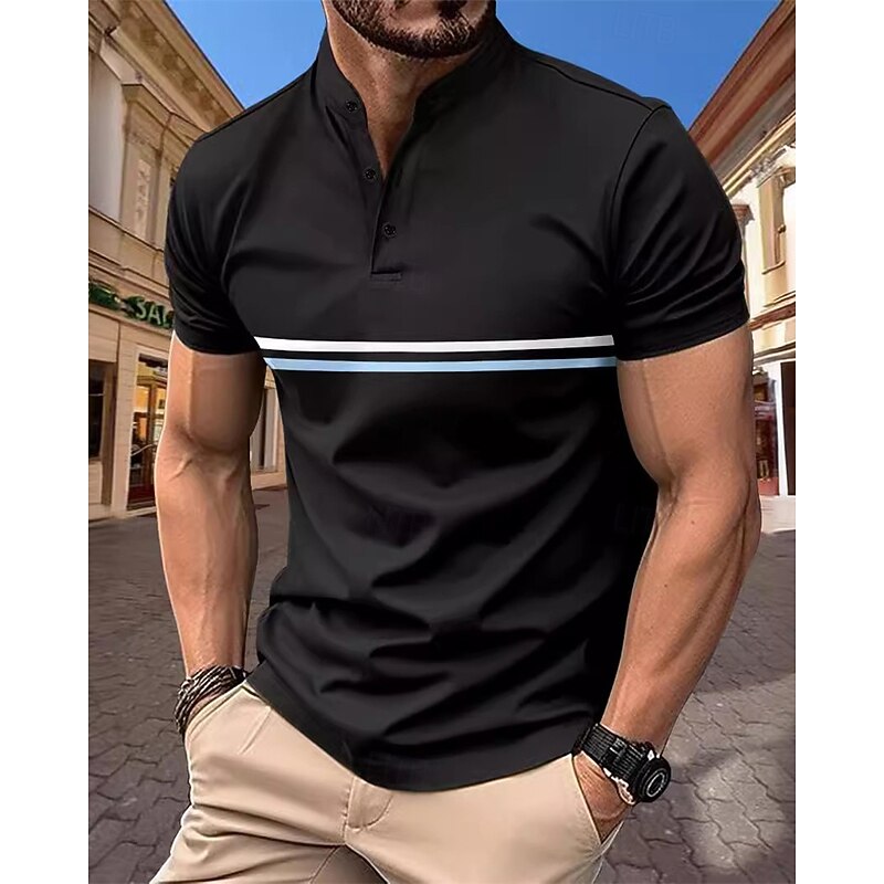 More information about Men's Golf Shirt Golf Polos Shirts Casual Sports Stand Collar Short Sleeve Basic Modern Color Block Patchwork Buttons Summer Spring Regular Fit Black Navy Blue Sky Blue Dark Green Brown Gray Golf