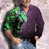 More information about Men's Animal Tiger Shirt Button Up Shirt Long Sleeve Fashion Streetwear Designer Outdoor Casual Daily Summer Spring Fall Turndown Print Yellow Blue Green Gray