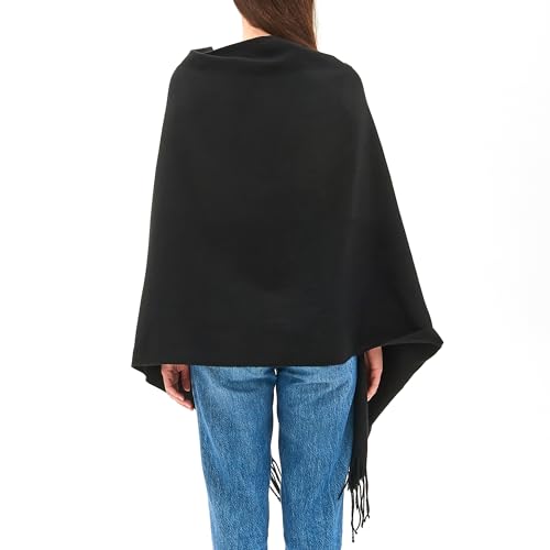 • VERSATILE – This shawl can be worn open front by draping over your shoulders or use the buttons to wear it like a cape. It can also be wrapped around your neck like an oversized scarf.