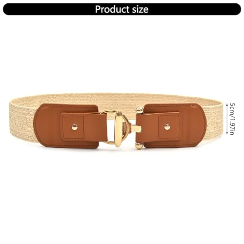More information about Braided Straw Belt With Secure Gold Clasp Lightweight Breathable Elastic Waistband For Dresses Formal Wear Girdle Breathable