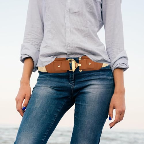 • Elevating your charm with this elastic waist belt feature durability gold clasp, craft from natural straw weaving for comfort and beach charm