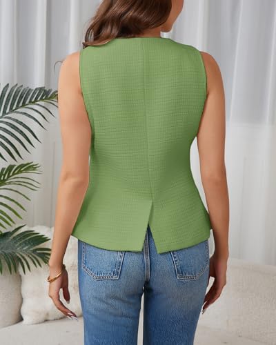 Women's Tweed Blazer Vest Sleeveless Button Front Casual Blazer Jackets Work Office Vest 4