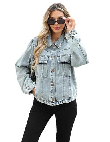 More information about Unilexi Womens Basic Long Sleeve Denim Jackets Trendy Button Down Jean Jacket Casual Trucker Jackets With Pockets