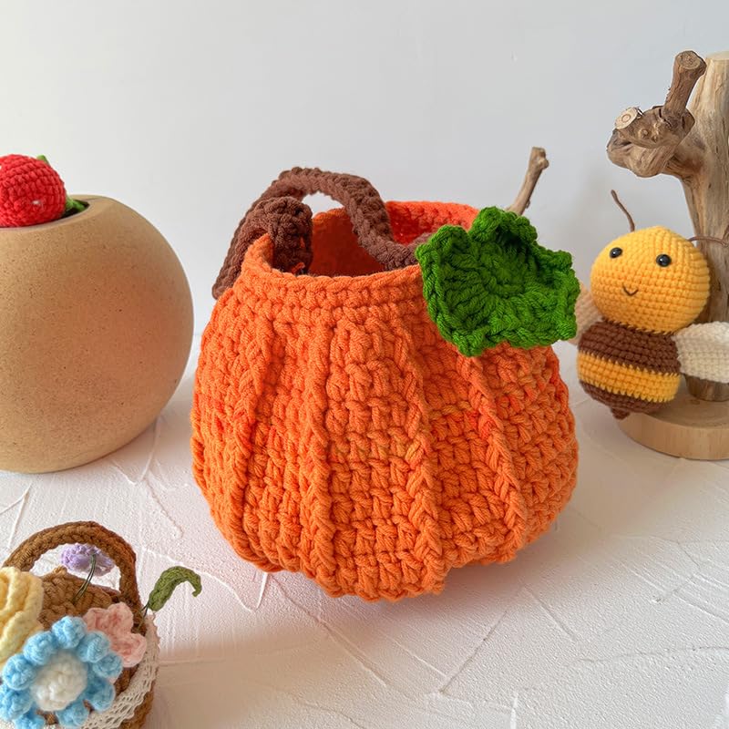 • The Perfect Size for All Ages with Crochet Pumpkins Bag: Measuring 16cm/6.3in in height, 17cm/6.7in in width, and featuring a 25cm/9.84in handle, the Crochet Pumpkins Bag is the ideal size for both adults and children. Its compact design makes it easy to carry around, while the long handle ensures a comfortable grip for all.