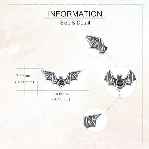 URONE Bat Earrings 925 Sterling Silver Gothic Bat Stud Earrings Halloween Jewelry Gifts for Women