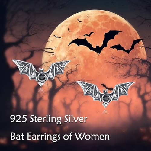 URONE Bat Earrings 925 Sterling Silver Gothic Bat Stud Earrings Halloween Jewelry Gifts for Women 1