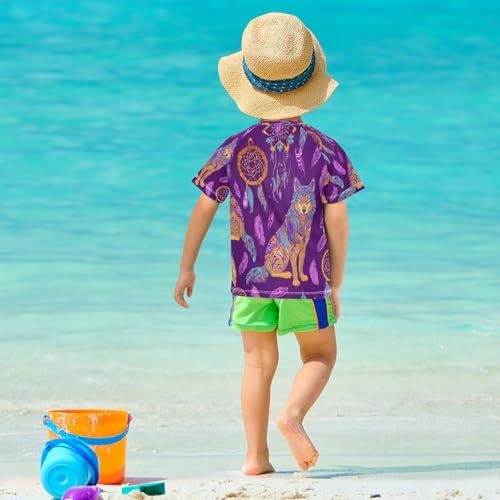 Boys Short Sleeve T-Shirts Dream Catcher Wolf Ethnic Rashguard Kids Swim Shirts Sun UPF 50+ 1