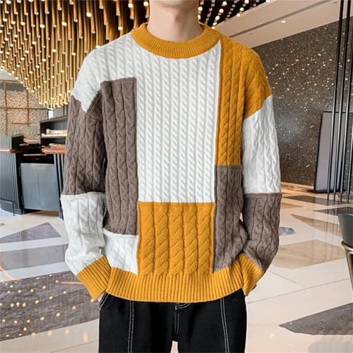 More information about Mens Casual Crewneck Sweaters Fashion Loose Contrasting Colors Patchwork Knitting Pullovers