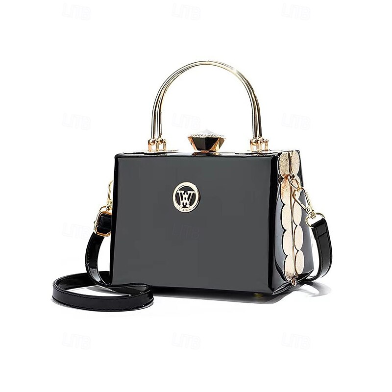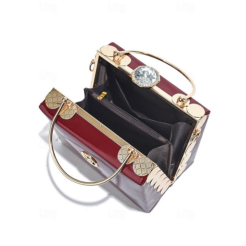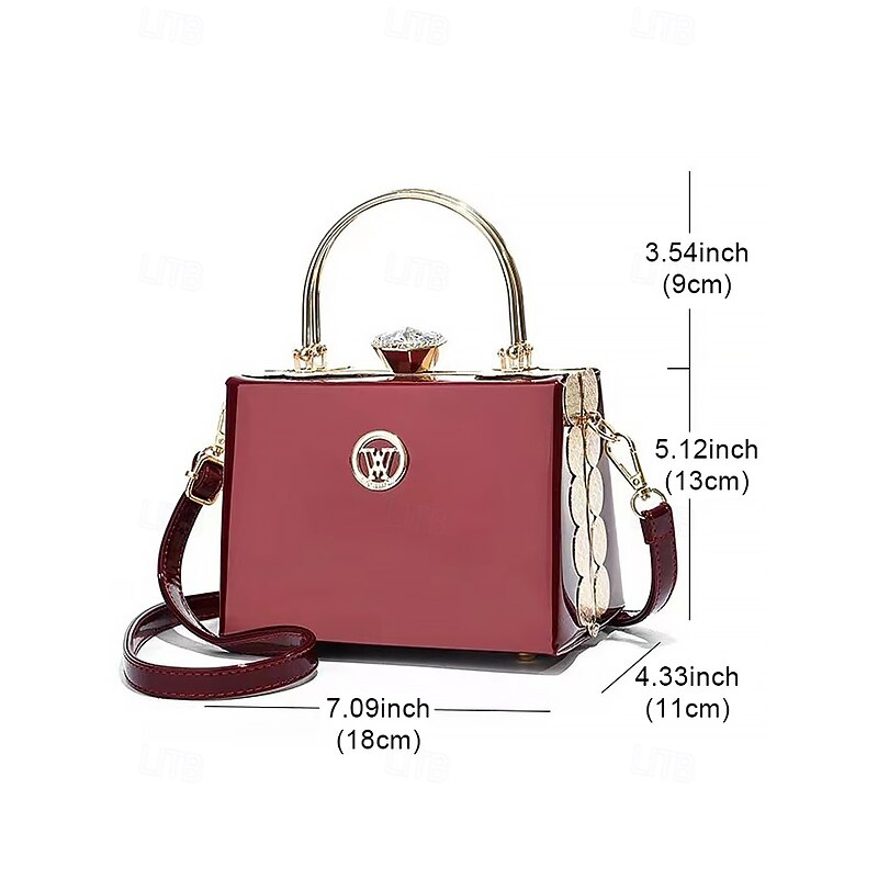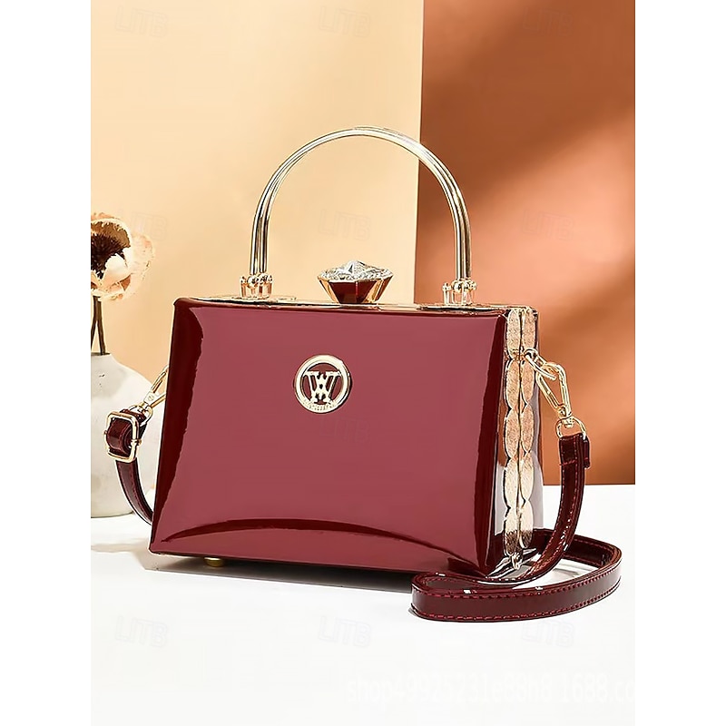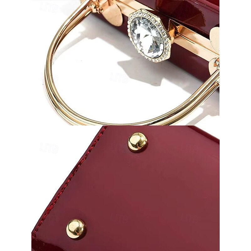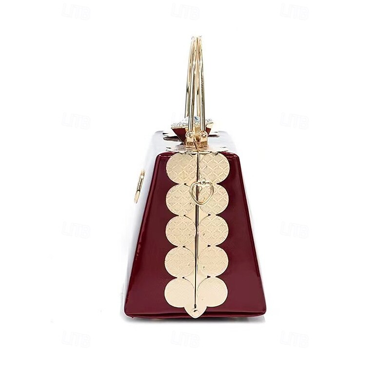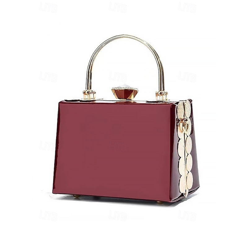 HOT ! Women's Burgundy Patent Leather Evening Handbag with Gold Handle, Vintage Gatsby Style Purse for Cocktail Parties, Weddings and Formal Events