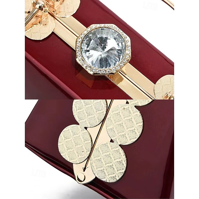 Women's Burgundy Patent Leather Evening Handbag with Gold Handle, Vintage Gatsby Style Purse for Cocktail Parties, Weddings and Formal Events 17