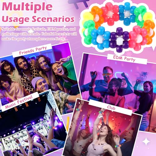 • [Eye-Seizing Neon Colors]Drenched in bright pinks, greens, oranges, and blues, these kandi bracelets scream festival vibes. The neon colored pony beads catch every stage light and flash, turning your wrist into a kinetic rainbow.