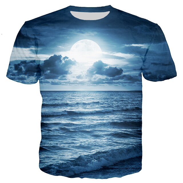 Highlights [Fabric]: Expertly crafted from high-quality polyester, this t-shirt ensures a lightweight and breathable feel that's perfect for summer days. The durable material offers easy care and maintains its shape, making it an ideal choice for casual wear. [Fit]: Designed for a regular fit, this men's holiday t-shirt provides a relaxed and comfortable feel. The classic crew neckline and short sleeves enhance its timeless appeal, making it an essential piece in any wardrobe. [Design Highlights]: Showcasing a mesmerizing 3D print of a serene ocean view under a moonlit night sky, the t-shirt stands out with its vivid and realistic imagery. The intricate design and vibrant colors make it a distinctive addition, suitable for those who appreciate unique fashion items. [Occasions]: This eye-catching t-shirt is perfect for summer outings, holiday gatherings, or casual weekends. Its calming aesthetic makes it an excellent choice for laid-back events, effortlessly combining style and comfort for any occasion. [Size]: Available in a range of sizes from M to 3XL, this t-shirt caters to various body types, ensuring a perfect fit for every individual.