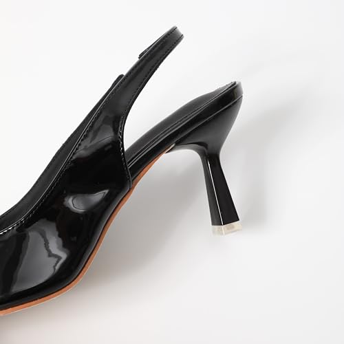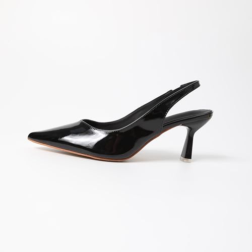• ELEGANT DESIGN: Patent leather slingback pumps featuring a sophisticated pointed toe and sleek stiletto heel for a timeless formal look
