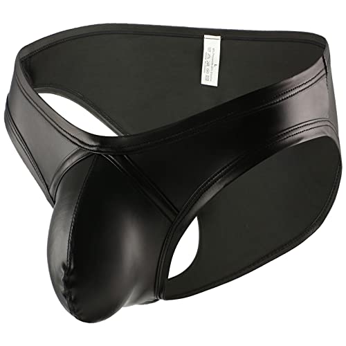 Male's Briefs Faux Leather Jockstrap Thong Stretch Briefs Sissy Pouch Panties Underwear 6