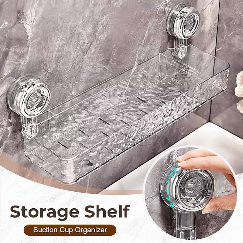 Corrugated Suction Cup Storage Holder, Light Luxury Style Punch-Free Storage Rack Movable Shower Shelf Suction Cup, No-Drill Wall-Mounted Storage Shelf 1
