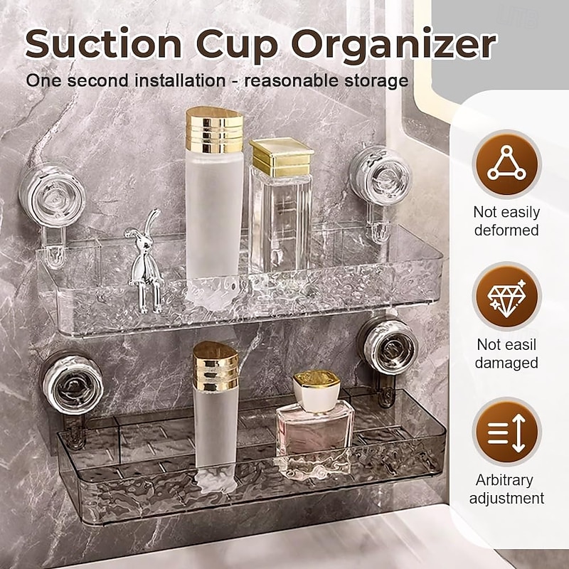 Corrugated Suction Cup Storage Holder, Light Luxury Style Punch-Free Storage Rack Movable Shower Shelf Suction Cup, No-Drill Wall-Mounted Storage Shelf 14