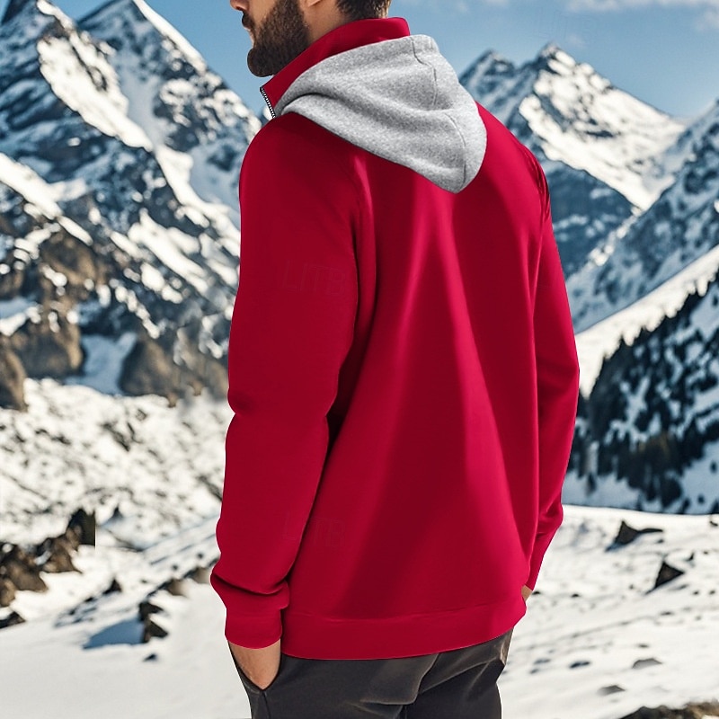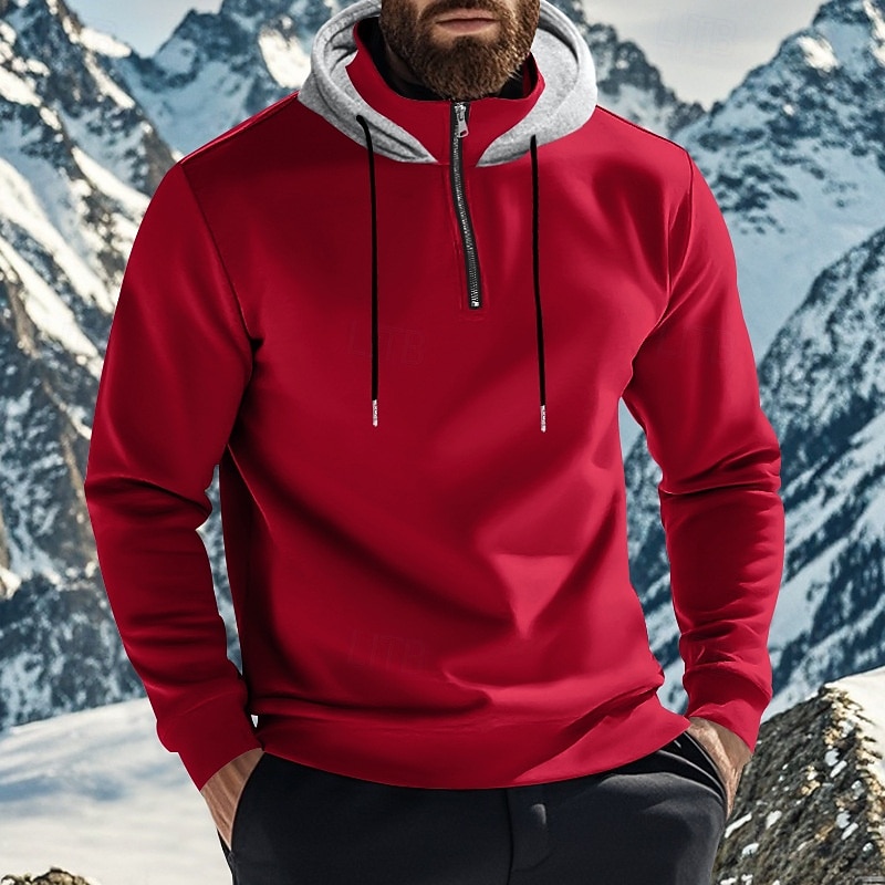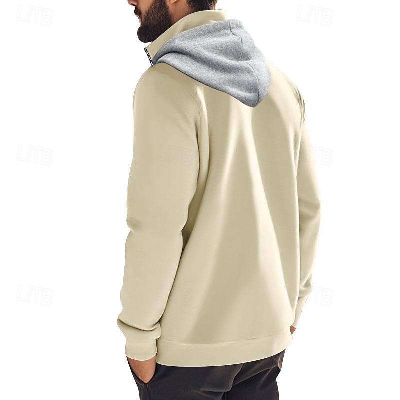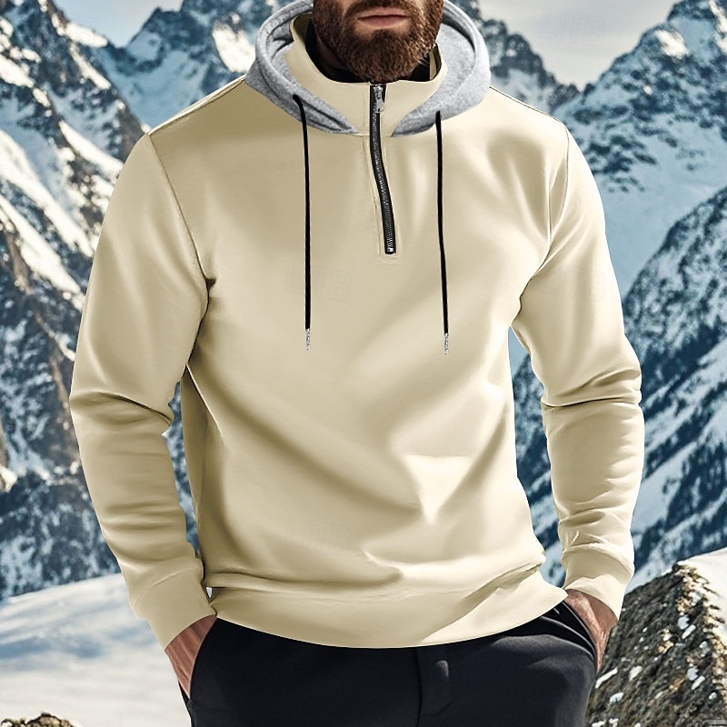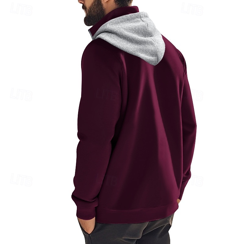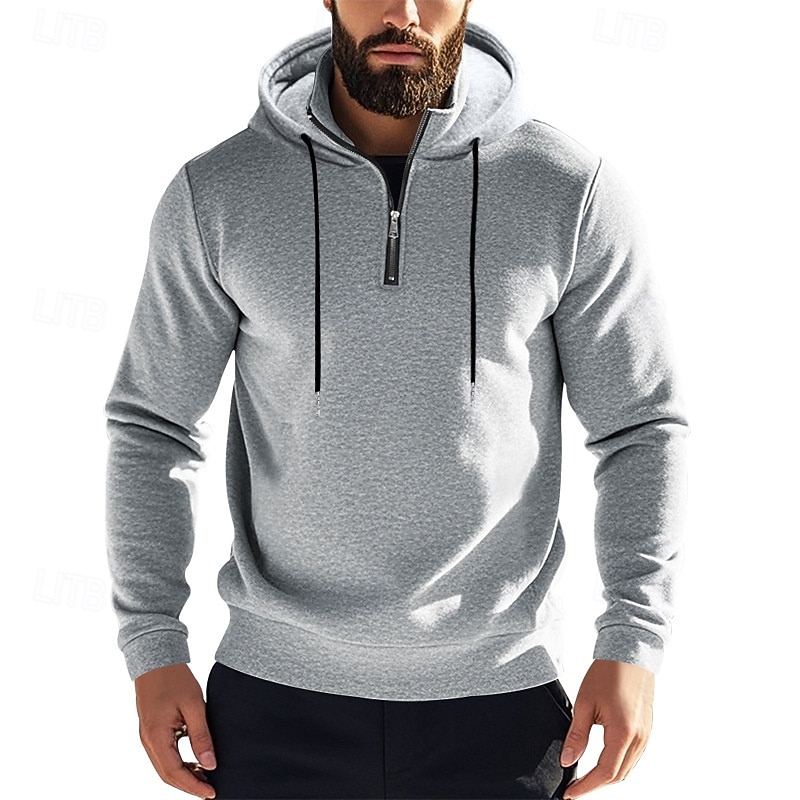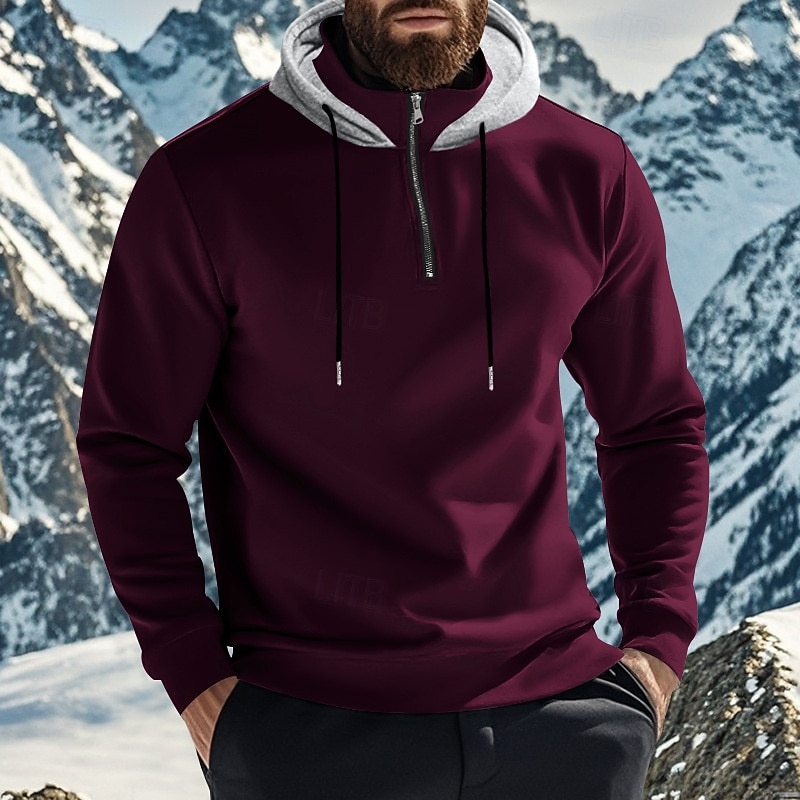 More information about Men's Hoodie Quarter Zip Hoodie Fleece Hoodie Apricot Black White Wine Red Hooded Half Zip Plain Pocket Sports & Outdoor Daily Holiday Polyester Streetwear Basic Casual Fall & Winter Clothing Apparel