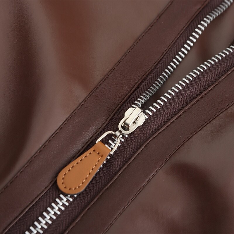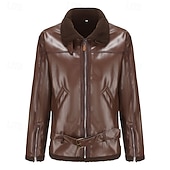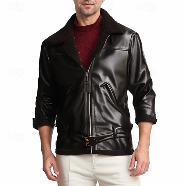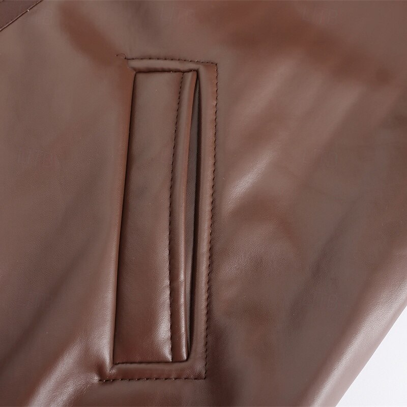 More information about Men's Faux Leather Jacket Biker Jacket Motorcycle Jacket Vacation Daily Windproof Warm Fur Trim Pocket Fall & Winter Plain Fashion Classic Lapel Regular Black Brown Jacket