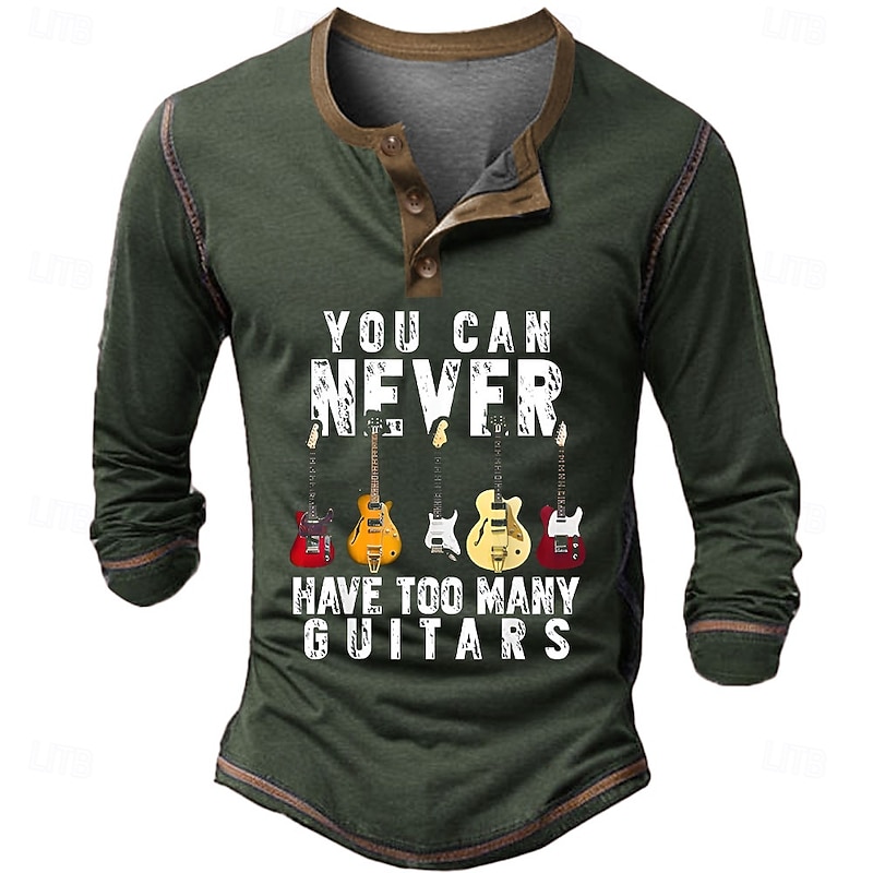 More information about Men's Graphic Guitar Henley Shirt Tee Long Sleeve Vintage Fashion Designer Outdoor Casual Daily Spring & Fall Army Green Black Navy Blue Henley Henley T-Shirt