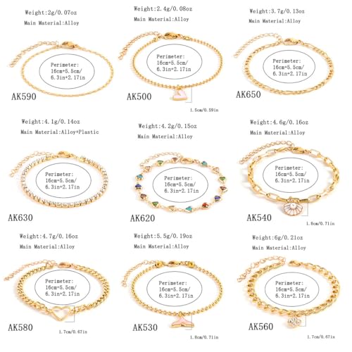 More information about 16 pcs Gold Plated Bracelets for Women Layered Chain Bracelets Adjustable Cute Bangle Link Bracelet Sets