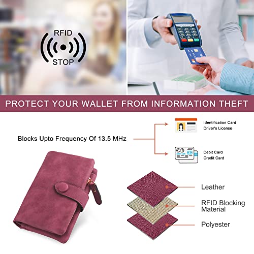 RFID Blocking Wallets for Women, Large Capacity Soft Leather Womens Small Wallet with Wrist Strap (Purple) 6