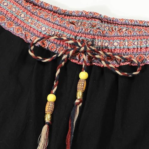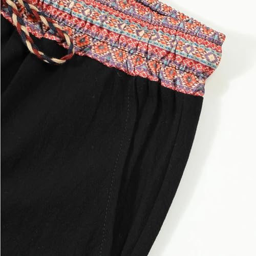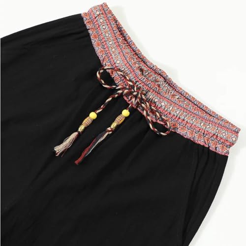 Cambkatl Men’s Vintage Ethnic Patchwork Lounge Pants Elastic Waist Drawstring Loose Workout Beach Pants with Pockets