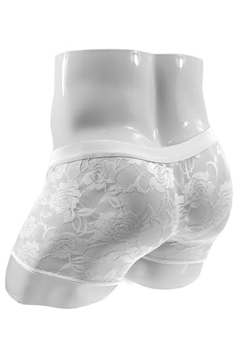Fabric type: 65%PolysterCare instructions: Hand Wash OnlyOrigin: ImportedBreathable and cozy: Made with high-quality mesh fabric, these men's boxer briefs provide excellent breathability and all-day comfort.Sexy lace design: Featuring a see-through lace pattern, these boxer briefs add a touch of sensuality to your underwear collection.Soft and smooth: Crafted with a soft and smooth material, these lace boxer briefs offer a gentle feel against your skin.Perfect fit for all: With its one size fits all design, these lace underwear are suitable for most adult men.Size: One size fits all (flat 31*2CM - stretched 45*2CM)sophisticated and trendy: Stand out with these translucent lace flowers patterned boxer briefs that combine style and sexiness.