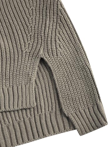 ZAFUL Women's Oversized Sweaters V Neck Long Sleeve Knit Pullover Batwing Drop Shoulder Split Tops Trendy Fall Outfits 2024 5